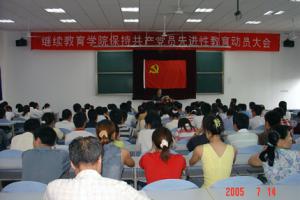 7月15日,学校保持共产党员先进性教育活动学生党员动员大会结束后,学院保先领导小组立即组织了包括本科、研究生、成人的支部书记培训会。