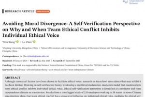近期,经济与管理学院陈璐教授在国际权威期刊Journal of Organizational Behavior在线发表研究成果“Avoiding Moral Divergence: A Self-Verification Perspective on Why and When Team Ethical Conflict Inhibits Individual...