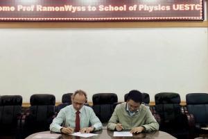 9月24日,理论核物理专家、瑞典皇家理工学院(KTH)Ramon Wyss教授受聘为物理学院荣誉客座教授。物理学院副院长肖绍球教授为Ramon Wyss教授颁发聘书。会议由副院长杨宏春教授主持。