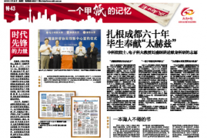 编者按:2016年4月29日出版的“成都日报创刊60周年特刊”特43版,以“扎根成都六十年 毕生奉献‘太赫兹’”为题报道了中国科学院院士、电子科大教授刘盛纲献身科研的奋斗历程,...