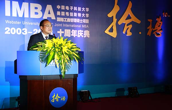 11月30日,电子科技大学与美国韦伯斯特大学合作国际工商管理硕士(IMBA)项目十周年庆典活动在电子科技大学沙河校区举行。百余名校友重返校园,齐聚一堂,欢庆IMBA项目十周年诞辰。