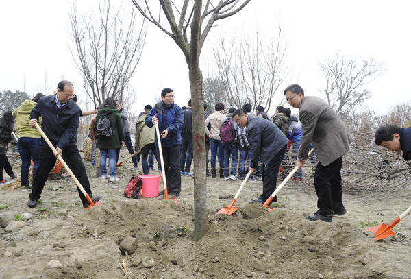 3月12日是第36个植树节,校党委书记王志强,校长李言荣,校领导马争、王厚军、朱宏、熊彩东及一百余名师生员工参加义务植树活动,在清水河校区二号人工湖畔种下60株樱花树。