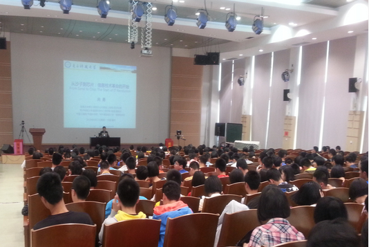 能源学院副院长向勇教授为中学生们作了《从沙子到芯片——信息技术革命的开始》的科普讲座。他向同学们阐述了芯片制造业的发展历程、未来的发展方向及把沙子制造成芯片的过程。他还介绍了电子科技大学在芯片领域的人才培养以及科学研究现状,鼓励感兴趣的同学立志今后从事芯片领域的研究工作。