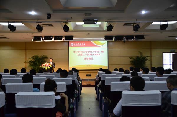 7月4日下午,电子科技大学EMBA2014年第一期(总第二十四期)开学典礼在清水河校区图书馆举行。电子科技大学副校长熊彩东、中国工程院院士李乐民、研究生院常务副院长廖云等出席典礼仪式,共同见证新一届55名EMBA学员开启学习新征程的时刻。开学典礼由经济与管理学院院长马永开主持。