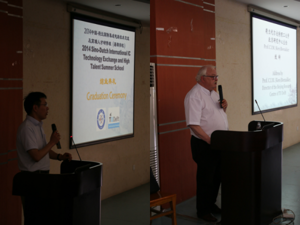 7月11日下午,2014中国-荷兰国际集成电路技术交流及高端人才研修班在清水河校区科研楼C216会议室举行结业典礼。