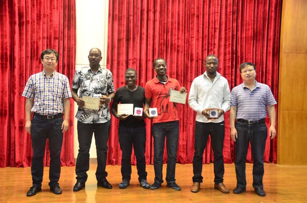 经管学院领导为此次夏令营的留学生志愿者颁发证书。
