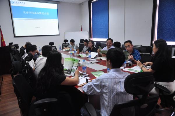 袁勤对暨南大学生命科学技术学院来访人员表示热烈欢迎。尧德中介绍了生命学院建院历史和基本情况。刘贻尧详细介绍了学院人才培养体系、学科建设、教学科研成果以及未来规划,着重介绍了学院“精细化、互动式”的教育理念和“因材施教,个性化教育”的办学特色。