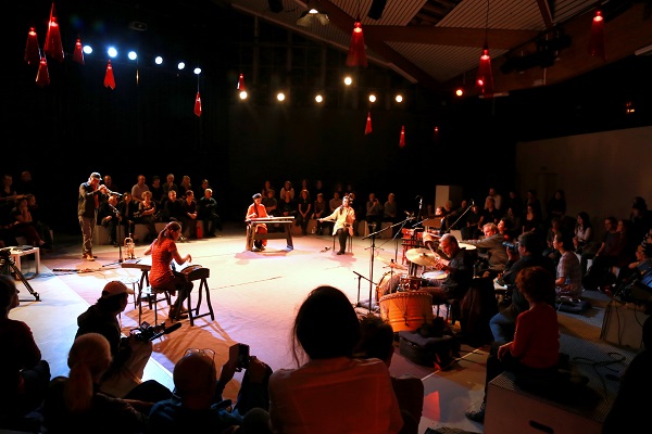 11月25日晚,在蒙彼利埃Chapelle艺术中心,赵晓霞女士与法国著名爵士音乐小号演奏家米歇尔·马雷(Michel Marre)、刚刚从芝加哥巡演归来的法国著名即兴爵士鼓手德尼·傅和涅(Denis Fournier)、丹麦皇家音乐学院打击乐系主任Gert Mortensen先生、丹麦孔子音乐学院乔佳佳院长,以及二胡、扬琴、古筝、古琴老师们携手带来一个半小时的全即兴表演,上演了一场中西音乐的跨界对话。精彩演出引来全场100多名观众不时发出“Bravo”的赞叹声。米歇尔·马雷先生几十年来多与非洲、亚洲音乐人,特别是印度音乐人合作,但他从没有接触过中国音乐。当晚与中国音乐人合作后,马雷先生激动地表示自己爱上了中国音乐,希望第二天就启程去探索中国这片神奇的土地,非常期待有更多的机会跟中国音乐人合作。