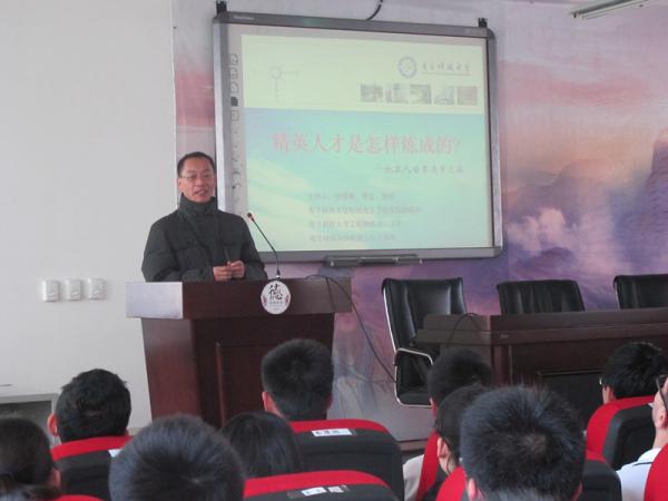机械电子工程学院副院长、校工程训练中心副主任和机器人队主教练骆德渊教授受邀为300余名中学生作《精英人才是怎么炼成的——机器人世界的逐梦之旅》的专题科普讲座。骆德渊教授从我校人才培养战略出发,结合大量多媒体影像资料,讲述了机器人的基本概念、分类、发展和应用前景,为学生呈现了一道精彩纷呈的机器人科学知识盛宴。他还介绍了我校该专业学生的日常生活、我校学子在国内外取得的优异成绩,欢迎有志学生报考我校。