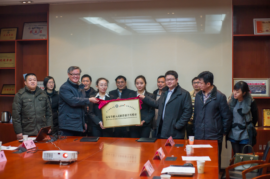 12月26日上午,航空航天学院与法国爱斯特尔技术有限公司“高安全嵌入式软件联合实验室”揭牌,航空航天学院党委书记刘强与法国爱斯特尔公司大中华区副总裁马金梭签署协议并共同为实验室揭牌。
