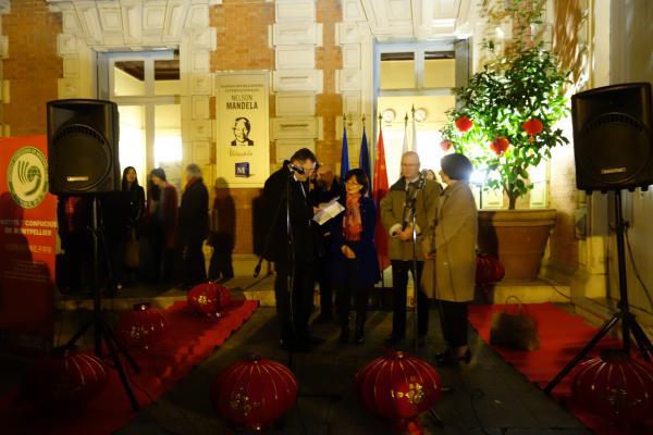 早在几天前,晚会200张门票就已售罄,活动现场人潮涌动,热闹非凡。中国驻马赛领事馆总领事余劲松及领事张磊专程从马赛赶来参加此次活动。蒙市市长代表、主管友城关系的市议员高特先生(Robert Cotte)、孔院理事长罗伯特先生(Michel Robert)、蒙彼利埃大学副校长拉卡尔德先生(Christian Lagarde)、学区代表勒卡尔先生(Franck le Cars)、蒙彼利埃保罗·瓦莱里大学外事副校长莫达尔(Anne-Marie Motard)女士等光临现场并讲话,表示对孔院目前的发展情况非常满意,会一如既往地支持和推广中国文化。