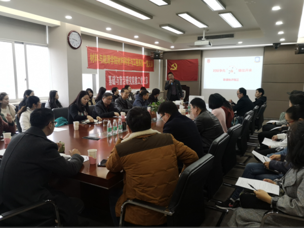 材料与能源学院党委书记周海涛,基础与前沿研究院党总支书记饶渐升,材料学院材料科学与工程系第一党支部党员及入党积极分子、研究生第三党支部党员,基础院教工党员及入党积极分子、研究生党员干部等参加。会议由材料科学与工程系第一党支部书记孙科主持。