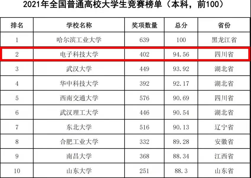 我校在2021年全国普通高校大学生竞赛榜单中名列前茅