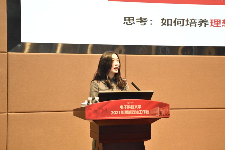 在交流发言环节,职能部门和学院代表介绍了五年来加强思想政治工作的创新举措,展示了成绩亮点,分享了工作经验。党委教工部负责人介绍了坚持师德第一标准,建立健全学校教师思想政治和师德师风建设长效机制的举措和成效;教务处负责人围绕高水平“科研育人”新工程教育计划实施,介绍了学校工程教育方面的创新实践;后勤保障部负责人以“服务‘e’生 ‘厚’情育人”为题,介绍了用心用情做好服务育人的有力举措;电子学院负责人分享了把握思政工作“道、术、势”,构建学院思想政治工作体系的探索和成效;光电学院前沿材料探索实验室团队负责人重点围绕提升质量内涵,介绍了打造特色育人导学团队、构建和谐导学关系的办法;格拉斯哥学院负责人立足新的时代特征,介绍了以“五育融合,四路协同”为牵引,探索新时代国际化人才综合素质培养的路径。