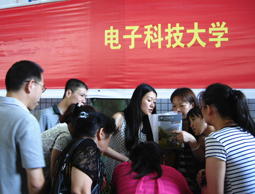 在招生咨询现场,招生工作组老师与攀枝花地区的学生及家长进行了面对面的交流。作为教育部直属985、211工程重点建设高校,电子科技大学以高质量的人才培养水平和突出的专业特色在攀枝花地区享有较高声誉。咨询活动刚开始,事先准备的大量学校资料就被守候已久的家长和学生一抢而空。前来咨询的学生和家长大多数对电子科技大学早已有相关了解,对电子信息类、通讯工程等理工科专业兴趣非常浓厚,部分文科学生及家长也对学校的文科类专业和新设专业表示关注。