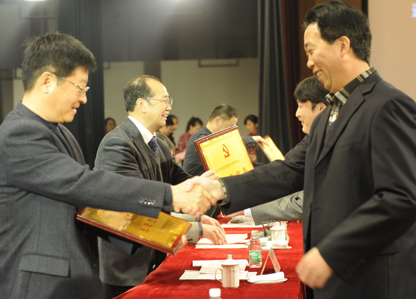 王志强等为受表彰的先进基层党组织和优秀共产党员颁奖。