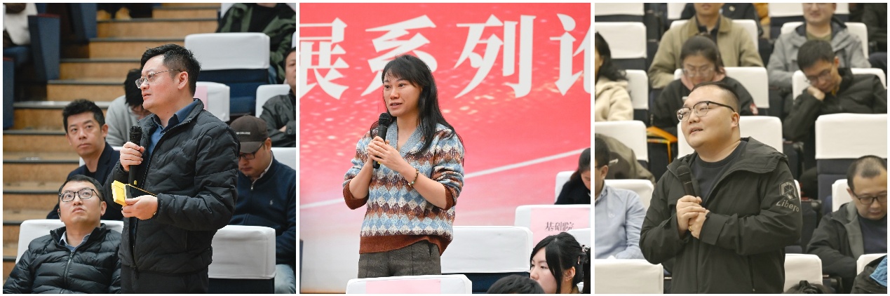 主题报告环节邀请了中国工程院院士、教育部教师队伍建设专家指导委员会专家分别作了题为“AI赋能高校教师发展”和“生成式人工智能融入教育:教师的可为、应为与善为”的报告,分别从当前AI 技术发展趋势和重大意义,教师在AI 时代的角色定位和行动路径等方面进行了分享。会上,报告专家们与现场观众就AI赋能教育的热点问题进行了深入交流。