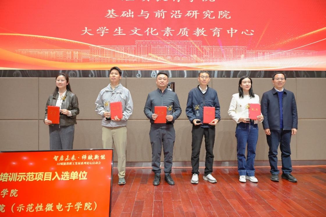 会上,胡俊为2025年度学校教职工发展培训示范项目入选单位颁发证书及荣誉奖杯。近年来,学校紧扣教职工职业需求,校院协同发力,打造了一批校级教职工发展培训示范项目。后续,学校也将聚焦人工智能赋能教职工发展这一主题,校院联动打造更多有亮点、有成效的培训项目。