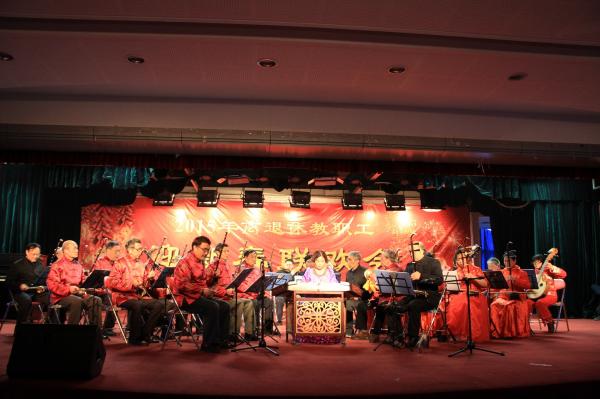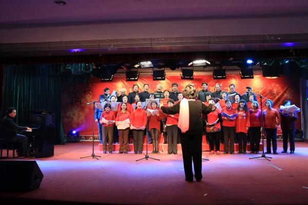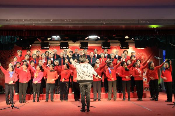 小合唱《门球之歌》,15位门球队员身着整齐的运动服,手持门球杆,精神抖擞,迈着矫健的步伐走上舞台时引来了观众的热烈掌声;舞蹈《沂蒙情》极具民族特色,身着艳丽演出服的老同志们舞着紅扇,用欢快热烈的舞步展现了革命老区军民鱼水一家亲的动人场景。英语歌曲《美丽的梦中人》《你鼓舞了我》歌声悠扬,俄语歌曲《伏尔加船夫曲》动人心弦。大学生艺术团的学生们带来了独舞《沂蒙颂》和女声独唱《美丽的心情》,她们曼妙的舞姿和动听的歌声赢得了观众的阵阵掌声,《纺织姑娘》、《大红枣儿甜又香》诠释出了老同志和美幸福的晚年生活。联欢会在民乐队一曲欢快、精彩的《春闹梨园》中圆满结束。