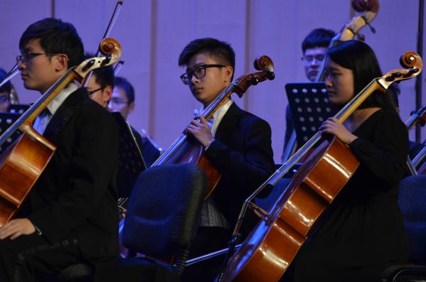 在新的一年即将到来之际,12月23日晚,校学生交响乐团、合唱团在清水河校区成电会堂为全校师生献上新年音乐盛会——“当东方遇见西方”。