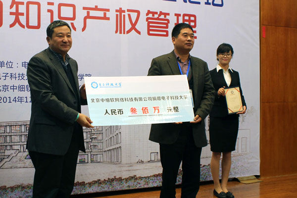 论坛期间还举行了四川省知识产权教育培训电子科技大学基地揭牌仪式、电子科技大学中细软知识产权管理研究中心成立仪式,以及北京中细软网络科技有限公司捐赠仪式。四川省知识产权局副局长杨早林与我校副校长杨晓波共同为培训基地揭牌。北京中细软网络科技有限公司董事长(电子科技大学EMBA校友)孔军民先生代表公司捐赠三百万元支持我校知识产权管理研究与教学,鼓励学生赴海外研习。