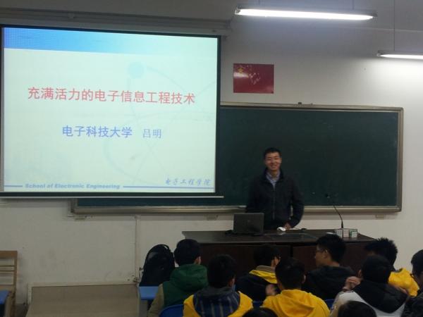 在重庆八中,吕明为高三学生作题为《充满活力的电子信息工程技术》的专题报告。他从电子信息工程技术的概念、电子信息技术的发展历程和热点技术、国内高校在电子信息工程领域的状况、电子信息技术发展趋势及人才需求等五个方面,向中学生们展示了充满活力的电子信息工程技术,交流分享了电子信息技术的过去和未来。