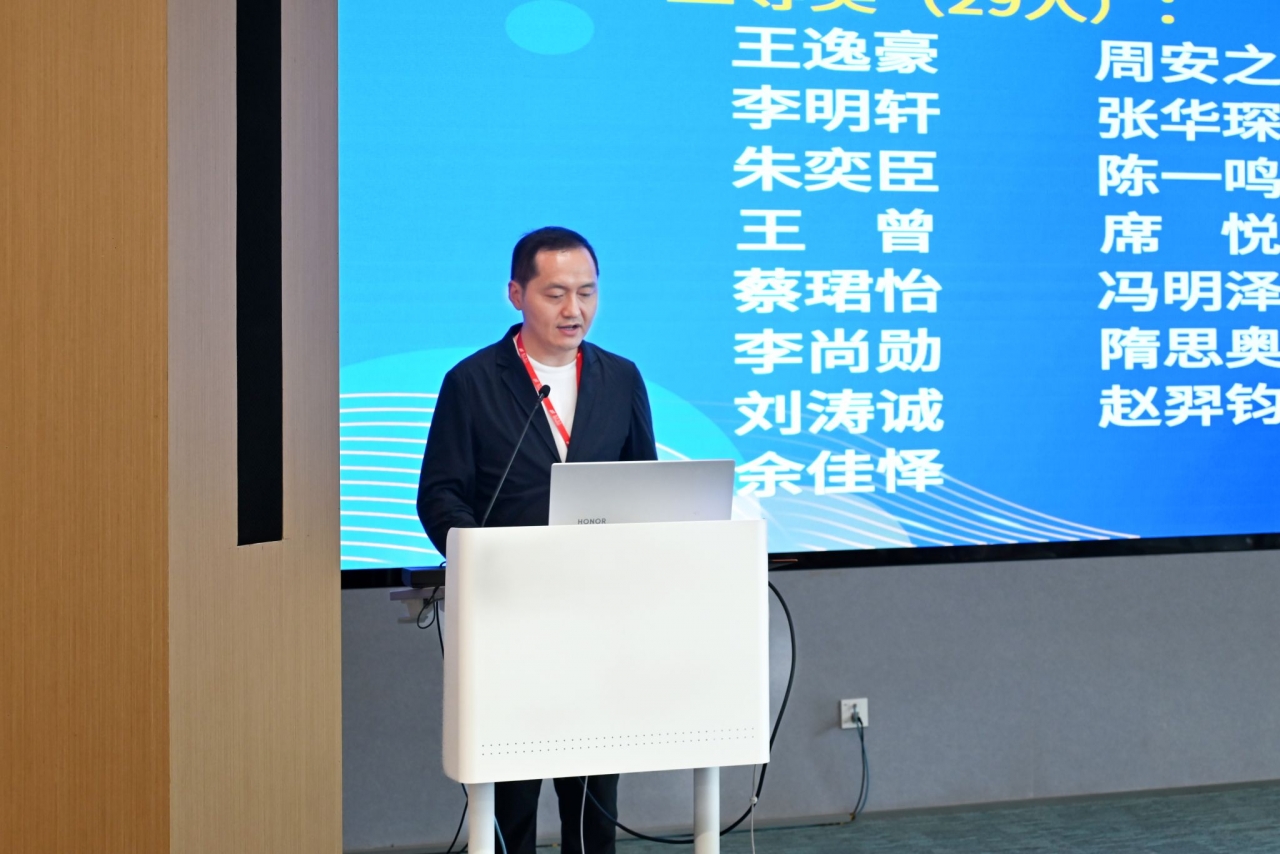 2022级获奖学生代表郑宇哲分享自己参加比赛的收获和感受。他回顾了自己和队友参加比赛的经历,他们通过查阅文献资料,反复调试,优化算法,提升了系统的稳定性和响应速度,较好完成了题目指标。他表示,这次竞赛的成功得益于公司的大力支持和学校学院的平台搭建,也离不开电子学院创新创业中心的老师和学长们的指导以及队友的帮助与信任。未来,他将继续积极参与各类学科竞赛,不断提升能力,积极参与学院科协的组织工作,带动更多的同学参与和感受科创竞赛的魅力。