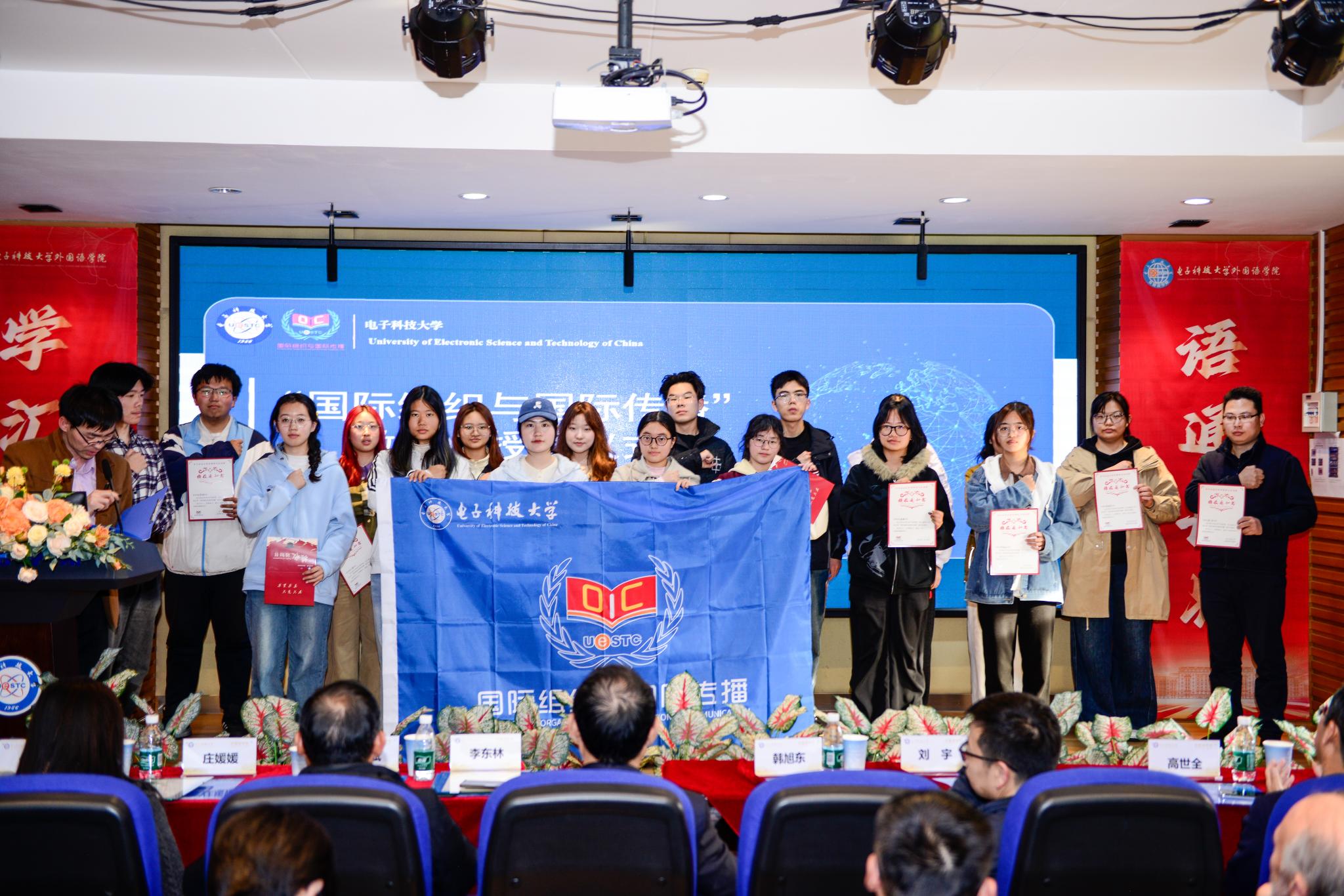 3月20日,“国际组织与国际传播”第七期开班仪式暨第三届毕业典礼举行。校党委副书记韩旭东、国际胜任力培养专业委员会学术委员会副主任李东林、国际标准化人才培训交流平台(成都)主任庄媛媛、副主任代潇潇,学校教务处、国际处、研工部、学生就业指导中心、电子学院负责人,外国语学院领导班子和微专业师生出席。