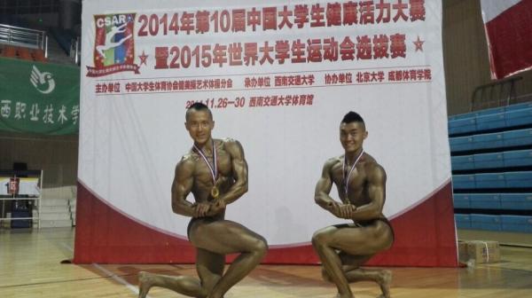 11月26日至30日,由中国大学生体育协会健美操艺术体操分会主办的“CSARA第10届中国大学生健康活力大赛暨2015年世界大学生运动会选拔赛”在西南交通大学举行,我校代表队参赛选手卜海朔顽强拼搏、不畏强手,最终夺得男子健美70KG第一名。