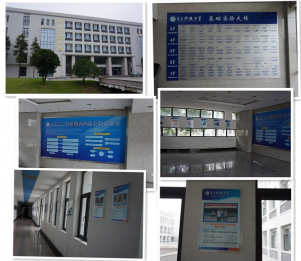按照教务处总体规划,所有实验中心都开展了中心标牌、中心简介、实验项目介绍、实验教学成果展示、相关领域发展状况以及走廊文化等展板的制作安装等工作。目前,第一期共15个学院完成了建设。其中,基础实验大楼(原一号科研楼)集中了我校大部分基础实验中心和创新中心,在相关部门配合下,完成了大楼名称的更改。一楼大厅完成了楼层引导图、实验教学总体情况介绍、名人名言的制作安装。二楼及以上楼层在相关基础实验中心文化建设的基础上,补充了学校各类学生科技创新活动获奖学生的荣誉墙。