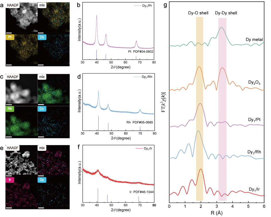 图3 镝单原子在Pt、Rh、Ir贵金属上的合成