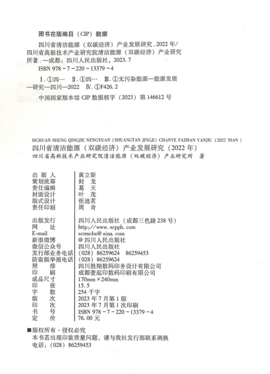 全书共包括七章、47节、3个附录,共计25.4万字、237页,主要内容包括:国内外清洁能源产业发展分析、四川省清洁能源产业发展分析、清洁能源产业链分析、四川推动清洁能源产业创新发展的案例分析、碳达峰-碳中和与双碳经济、清洁能源产业相关政策解读、四川清洁能源产业发展趋势及展望、清洁能源产业重大关键共性技术难题、2022清洁能源领域大事记等。