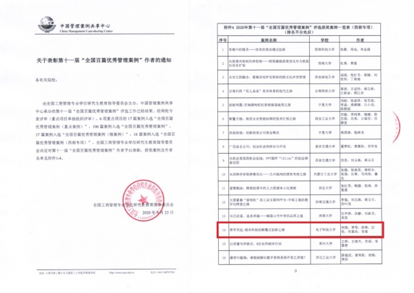 10月18日,第十一届“全国百篇优秀管理案例”评选颁奖仪式在2020年全国MBA培养学校管理学院院长联席会议上举行,电子科技大学经济与管理学院宋艳教授及其带领的研究生共同撰写的管理案例《异军突起:极米科技的颠覆式创新之路》入选第十一届“全国百篇优秀管理案例”。