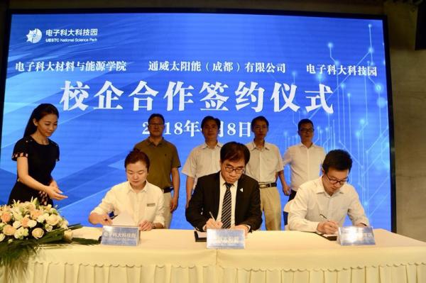 周海涛分别与通威太阳能(成都)有限公司、四川科能锂电有限公司、成都中建材光电材料有限公司签署技术对接协议。