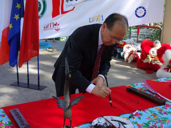 蒙彼利埃二大校长罗伯特•米歇尔教授、副校长弗朗索瓦教授、一大副校长拉加德教授、蒙彼利埃市主管国际事务与友城的副市长歌特先生、中国驻马赛总领事馆副总领事张伟先生等参加开幕仪式并讲话,高度赞扬蒙彼利埃孔子学院一年来所取得的成绩和卓有成效的工作, 感谢各界对孔子学院的支持。他们表示对孔子学院的光明未来充满信心, 希望孔子学院积极开展教学和文化活动, 为推动中法文化交流,增进两国人民友谊作出贡献。