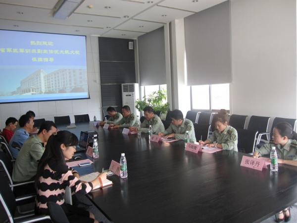武佳对省军区长期以来的支持表示了感谢,并通过学校宣传片全面地介绍了我校的状况。军事教研中心科长徐科对我校军事理论课程工作进行了汇报。
