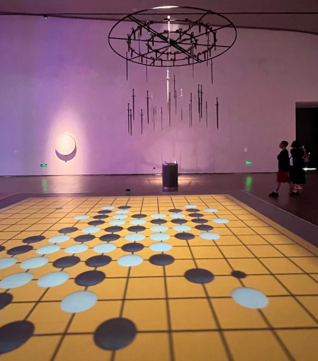 展馆内,还有灵感源自老子《道德经》的虚实相生混合场域作品——《若水》,基于丝绸之路主题背景所构建的虚幻元宇宙交互空间作品——《丝绸星路》,由AI对弈的作品《观棋不语》……一件件构思新颖、设计巧妙、沉浸式体验的交互装置吸引了大批观众前来参观体验。