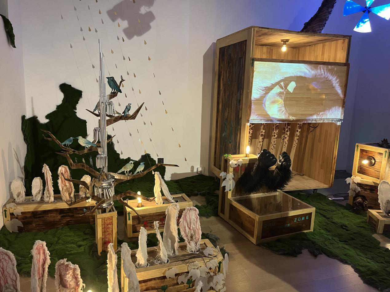 四川美术学院研究生二年级学生孙嘉忆表示,这件作品的灵感源自对动物园中动物行为的观察,试图在作品中模拟动物们的生存困境和反复行为,从而引发观众对人类干预自然界、人类干预动物生存的反思。