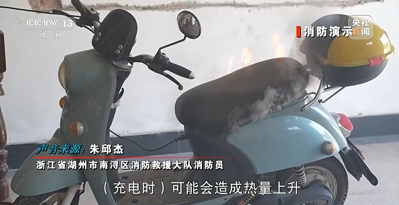 浙江湖州南浔区消防救援大队消防员 朱邱杰:这是一辆非法改装车,增加电机的功率,加装电池电瓶的数量,充电时可能会造成热量上升,从而增加火灾的风险。现在比较常见的情况是,市民朋友们整夜充电,充电器插上就不拔了,到第二天早上才拔,会增加电瓶的荷载功率。