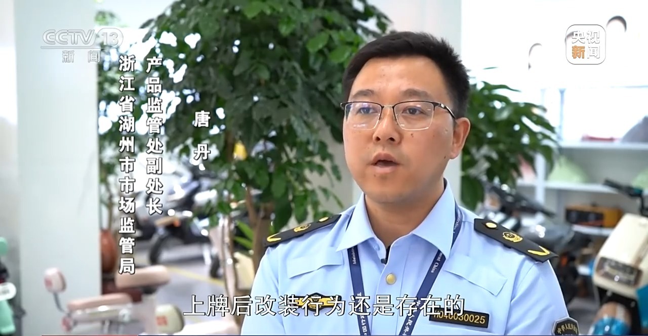 浙江湖州市场监管局产品监管处副处长 唐丹:从我们检查情况来看,目前生产销售环节发现的改装情况几乎已经是没有了,但是从公安部门通报的情况来看,上牌之后的改装情况还是存在的。无论是在生产销售环节,还是在上牌登记后的使用环节,只要发现电动自行车的改装行为,我们市场监管部门和公安部门都会在各自的职责范围内依法予以查处。