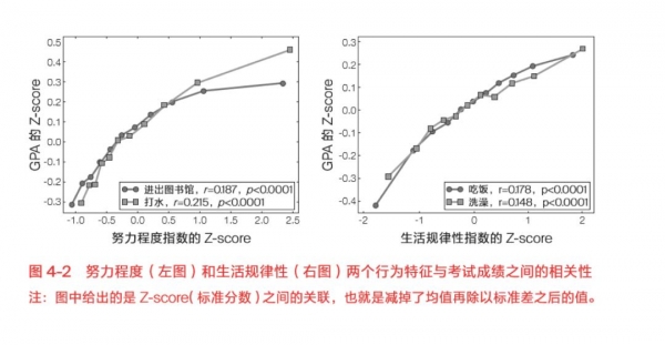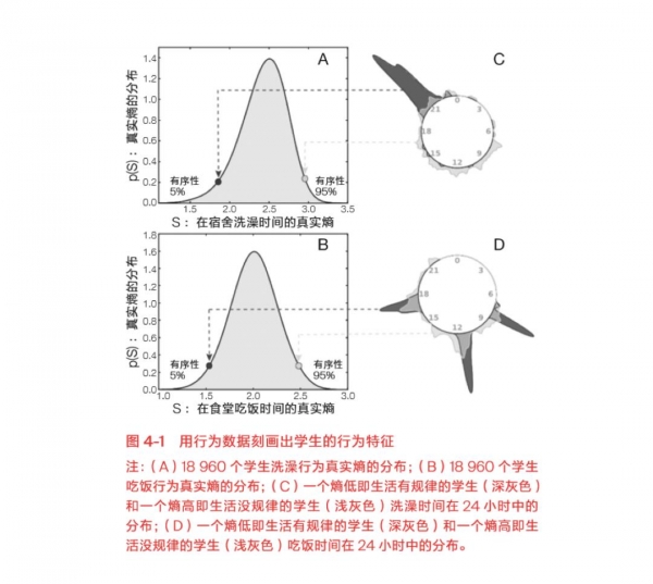 我们直接用进出图书馆的次数和在教学楼打水的次数来刻画学生的努力程度,因为这两种行为与上课及上自习紧密相关。刻画生活的规律性要稍微复杂一点,需要用到真实熵。
