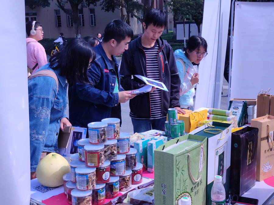 2019年10月扶贫日期间,电子科技大学在校内举办定点帮扶地农产品展销会(电子科大供图)