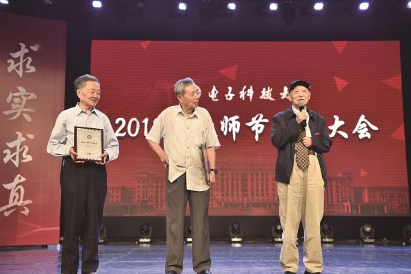 接过奖牌的刘盛纲院士说,得到这个奖非常激动,“中华民族一向重视教师和教书育人,希望我们大家一起共同努力,让‘双一流’ A类的电子科大办得更好。”中国科学院院士刘盛纲、中国工程院院士李乐民、中国科学院院士陈星弼自1956年建校以来,一直扎根电子科大从事科学研究和人才培养工作,三位院士获得首届“成电立德树人成就奖”,以表彰他们在立德树人、教书育人等各项工作中作出的突出贡献。