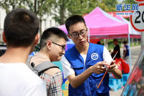 今年电子科技大学信息中心推出了“微迎新”数字化报到,图为志愿者向新生介绍“微迎新”操作流程