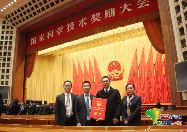 罗光春教授的团队在北京人民大会堂获奖现场合影留念。 电子科技大学 供图