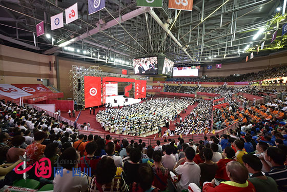 中国网四川成都9月29日讯(宋佚)9月29日,电子科技大学建校60周年总结暨“双一流”建设动员大会在清水河校区体育馆举行,6000名海内外校友和师生员工欢聚一堂,共同庆祝电子科大的甲子生日。