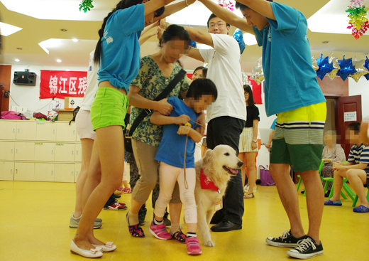 孩子们与可爱的“狗医生”熟悉后,又在欢快的音乐声中,和老师、家长、志愿者们一起玩起了互动游戏。“孩子很少会这么主动热切地与外界交流,或许‘狗医生’打开了他们心中的一扇窗”,看到孩子们不同寻常的表现,家长们满是惊喜和高兴。