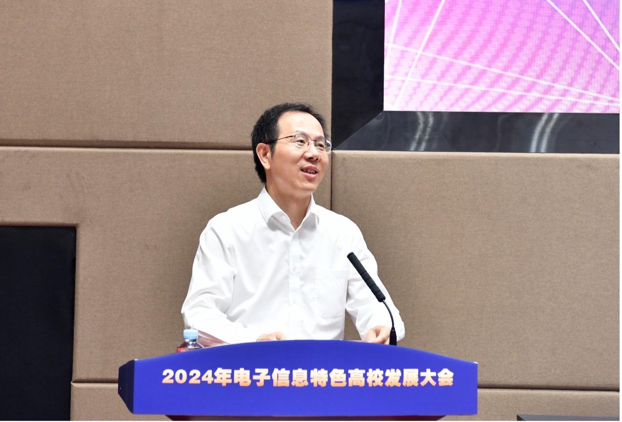 电子科技大学校长胡俊在致辞中指出,建设教育强国是电子信息特色高校义不容辞的责任和加快发展的动力。未来,电子科大将继续与兄弟高校、行业企业共同书写好“教育强国、高校何为”的精彩答卷,为全面建设社会主义现代化国家、以中国式现代化全面推进中华民族伟大复兴作出电子信息特色高校的共同贡献。