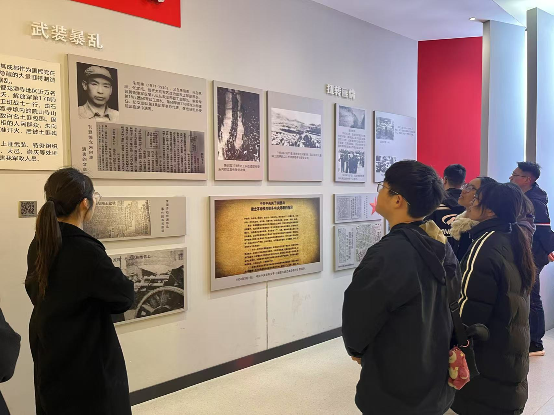最后,同学们一起参观了马鞍山烈士纪念园内的纪念场馆,通过珍贵的历史照片、文物史料和影像记录,深入了解革命先烈的英勇事迹与光辉历程。馆内陈列的战局推演图和战斗场景还原,让在场同志深受触动,深刻体会到革命胜利的来之不易。