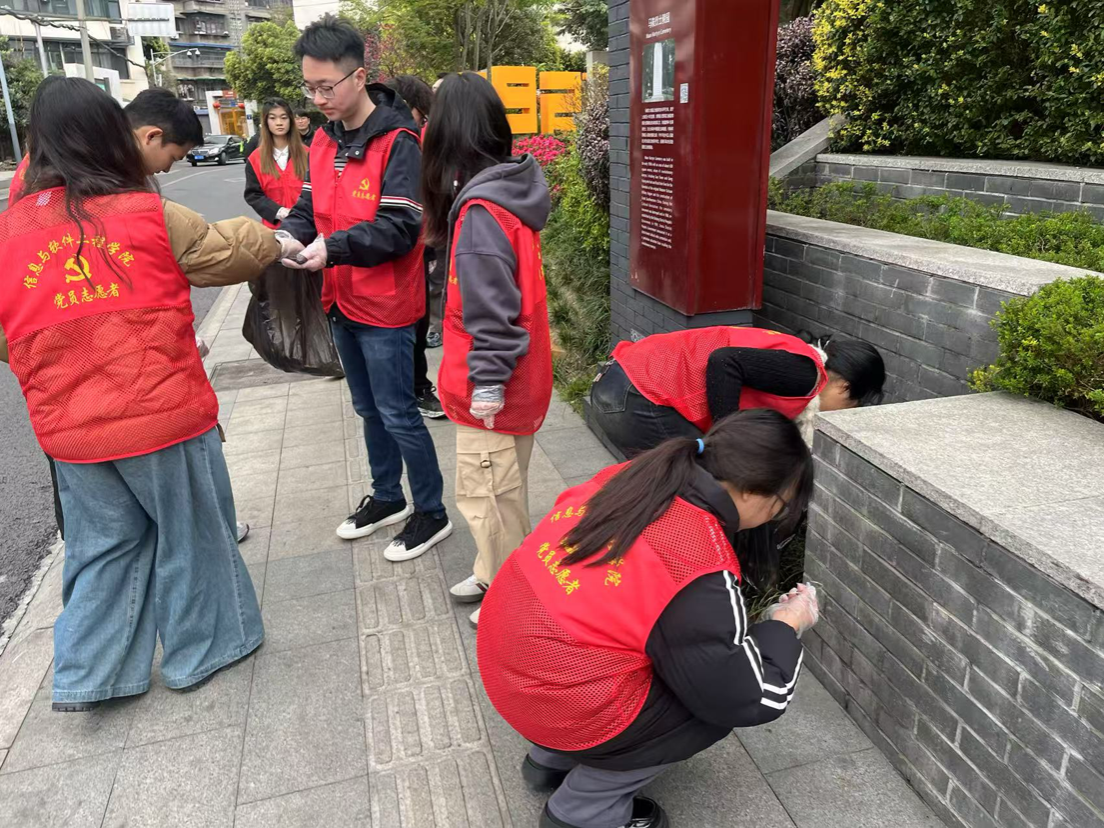 祭扫仪式后,全体党员身着志愿者服装,分组开展“守护陵园环境”志愿服务行动。师生手持清洁工具,仔细捡拾纪念园内及周边道路的垃圾,以实际行动践行党员责任,维护革命圣地的庄严与整洁。